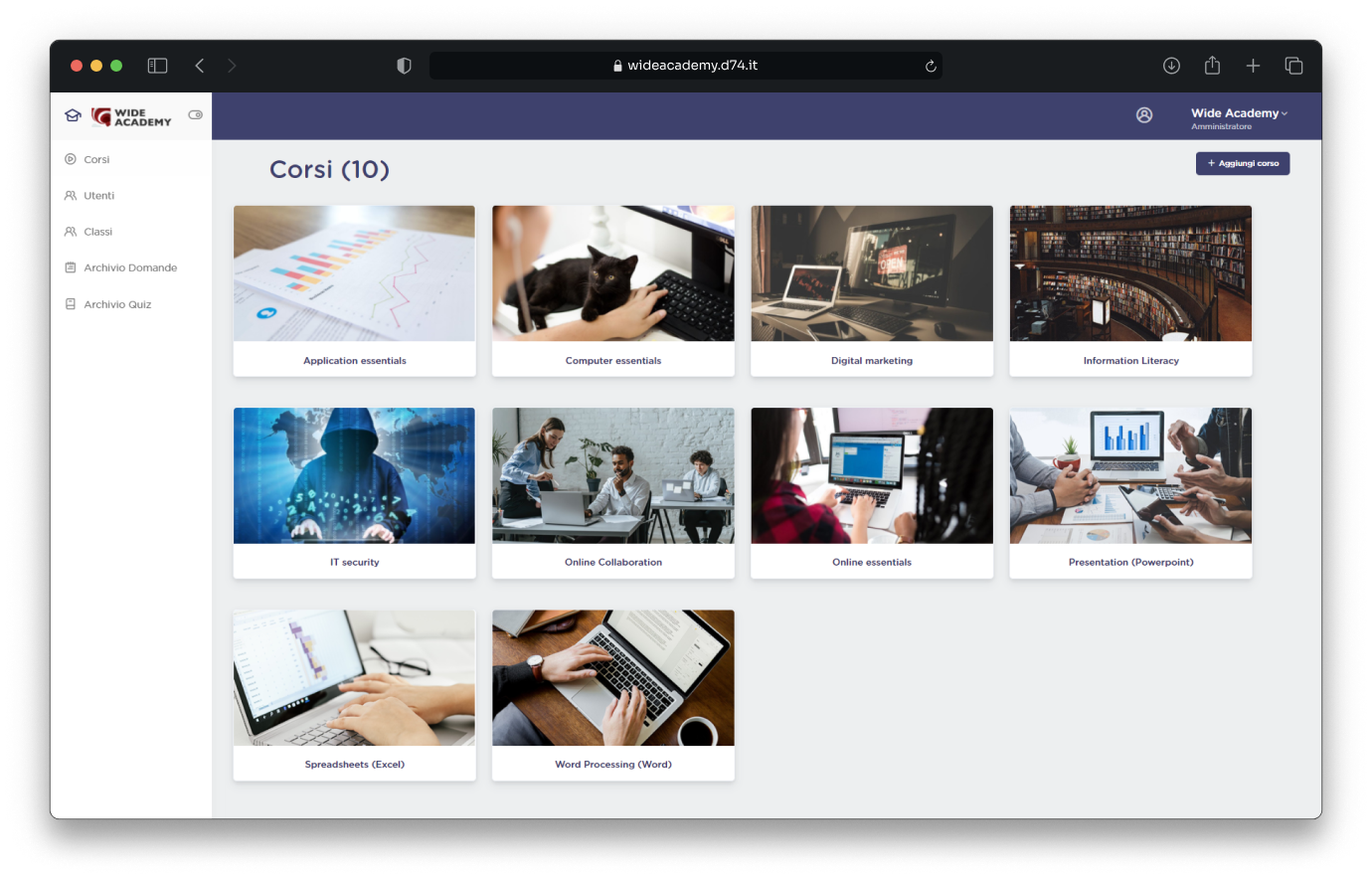 Wide Learning è un Learning Management System che permette a chiunque di proporre online i propri videocorsi e organizzare webinar.